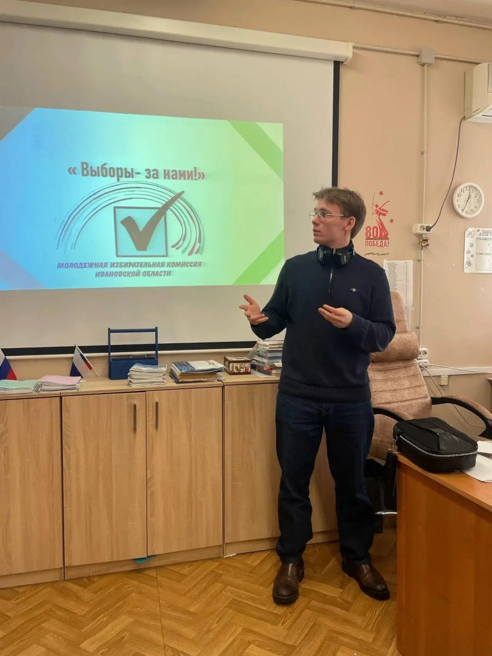 В гимназии № 36 города Иванова просветительскую встречу провёл председатель Молодёжной избирательной комиссии Ивановской области Владислав Умеренков. Порядка 20-ти одиннадцатиклассников стали участниками викторины «Выборы - за нами» и ответили на вопросы трёх блоков: