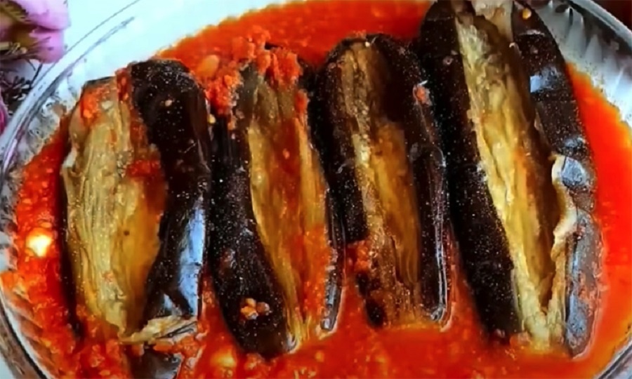 Горячие баклажаны следует укладывать в стерилизованные банки, заливая ароматным соусом. Банки закрывается герметично и переворачиваются вверх дном, чтобы сохранить все вкусовые качества заготовки. Этот простой метод обеспечивает долгую сохранность и помогает избежать дополнительной пастеризации.