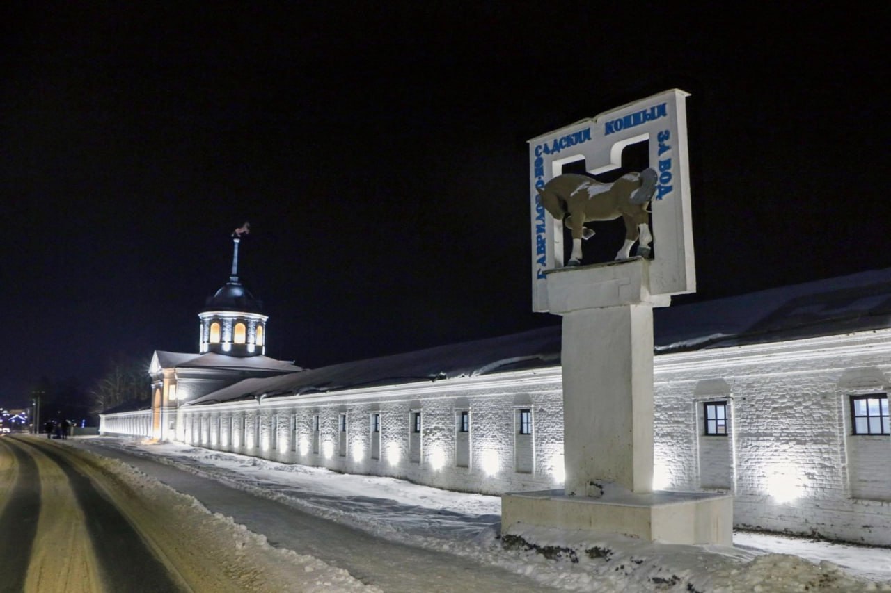 В Палехе смонтировали архитектурную подсветку здания арт-мастерских и Дома ремесел, установили знаки туристической навигации и указатели к основным достопримечательным объектам, появились стилизованные декоративные крышки люков.