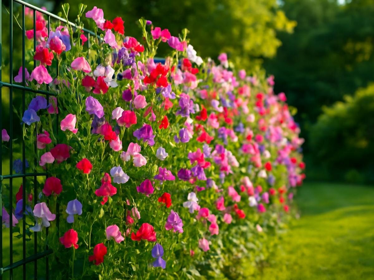Таким образом, душистый горошек не просто украшает, но и служит защитой для вашего сада — идеальное сочетание красоты и функциональности!