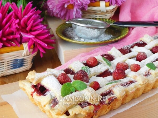 Пирог из слоеного теста с замороженной клубникой