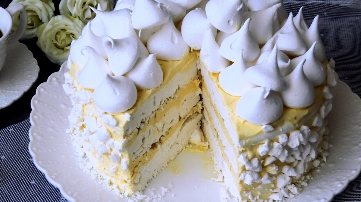Этот изысканный торт, известный под именем «Полёт», не оставит равнодушными сладкоежек. Воздушная текстура и белоснежный цвет делают его настоящим украшением любого стола. Уникальность этого десерта достигается благодаря медленному высушиванию его коржей в дегидраторе, что придаёт им невероятную легкость.