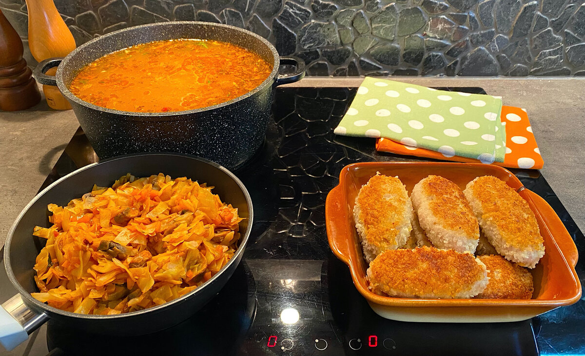 К второму блюду идеально подойдут куриные котлеты с гарниром из капусты и грибов. Этот рецепт такой же простой и вкусный.