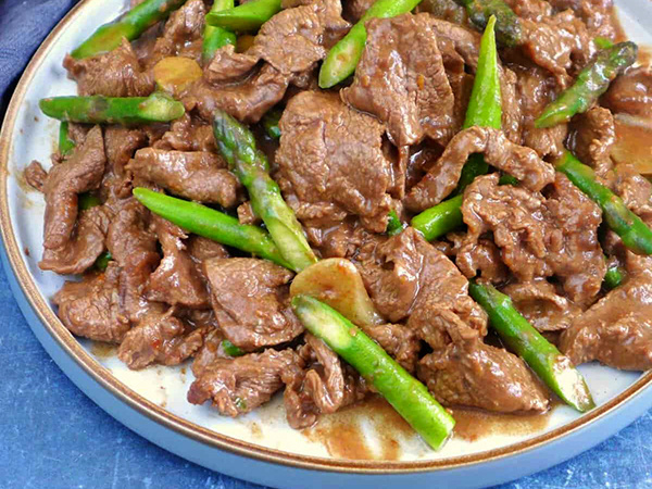 Сочетание спаржи с мясом дарит свежесть и лёгкость, а подача с рисом или лапшой завершает композицию без лишних усилий.