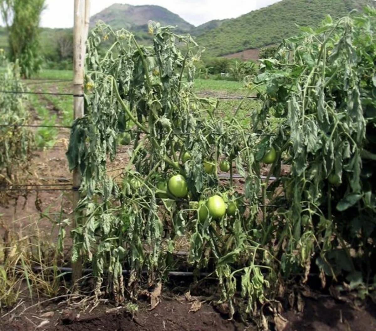 На ранних этапах визуальные сигналы не всегда яркие, но есть характерные изменения: нижние листья желтеют и скручиваются, прожилки светлеют, черешки теряют упругость. Со временем болезнь распространяется вверх по кусту, а сами плоды становятся безвкусными и рыхлыми. При обрезке увядшего ствола внутри часто видны коричневые волокна, а на нижней части стебля может появиться светло?бурый налёт.