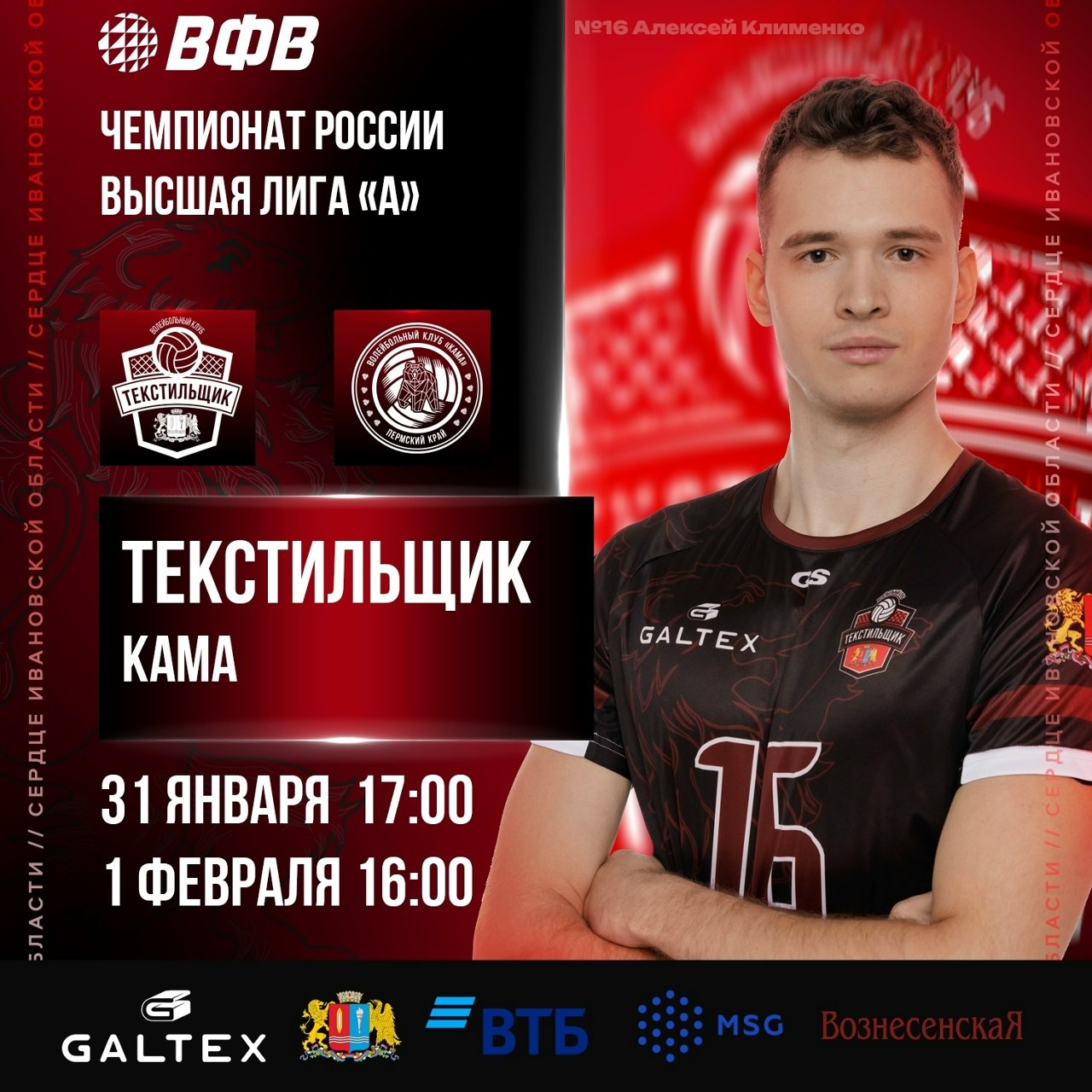 Второй круг Чемпионата России по волейболу состоится в ивановском Дворце игровых видов спорта. В эти выходные на площадке встретятся команды Высшей лиги «А». Соперником ивановского «Текстильщика» станет пермская «Кама». Игры пройдут 31 января в 17:00 и 1 февраля в 16:00. Приглашаются все желающие, вход свободный.