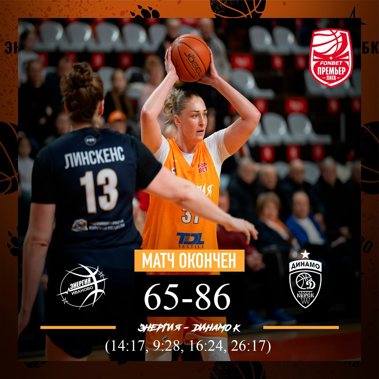 Баскетболистки ивановской «Энергии» уступили курскому «Динамо». Встреча с одним из лидеров Премьер-лиги во Дворце игровых видов спорта завершилась поражением оранжево-черных со счетом 65:86. Самыми результативными у хозяек стали Александра Елисеева, Екатерина Кузнецова и Мария Ушакова. Уже в это воскресенье «тигрицы» вновь сыграют дома. На своей площадке в 14 часов они примут московский клуб МБА-МГУСиТ.