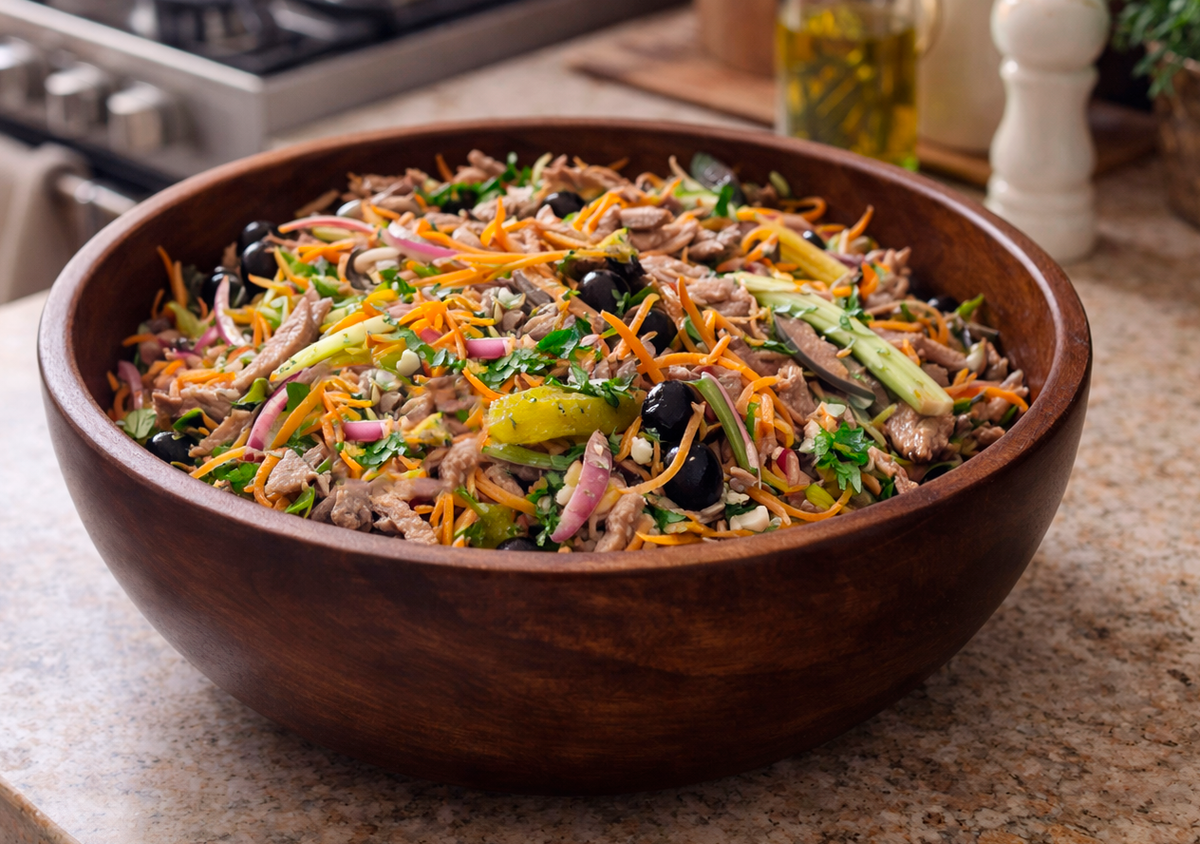 Этот салат радует гурманов своим ярким вкусом и текстурой!