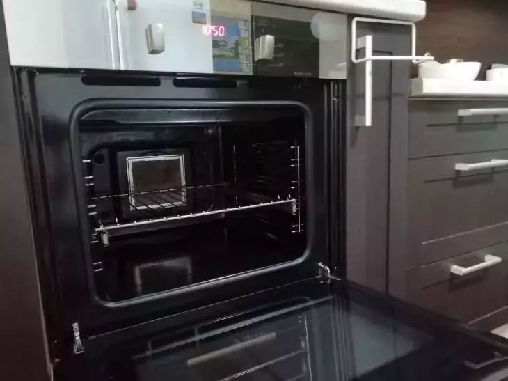 Затем протрите стенки и дверцу духового шкафа влажной салфеткой, чтобы убрать остатки средства.