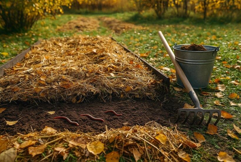 Заключительным этапом перед зимой становится мульчирование. Этот процесс помогает защищать почву от промерзания и выветривания, а также предоставляет необходимые питательные вещества. Для мульчирования лучше всего подходят такие материалы, как солома, торф, перепревший компост и опилки. Подходящий слой должен составлять 5-7 см, чтобы обеспечить защиту, но при этом необходимо оставлять «окна» для вентиляции, чтобы избежать сырости и гнили.