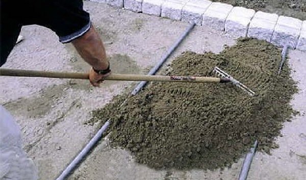 Завершив укладку, все швы заполняются просеянным песком, что защищает их от разрушений и обеспечивает эстетичный вид покрытия.