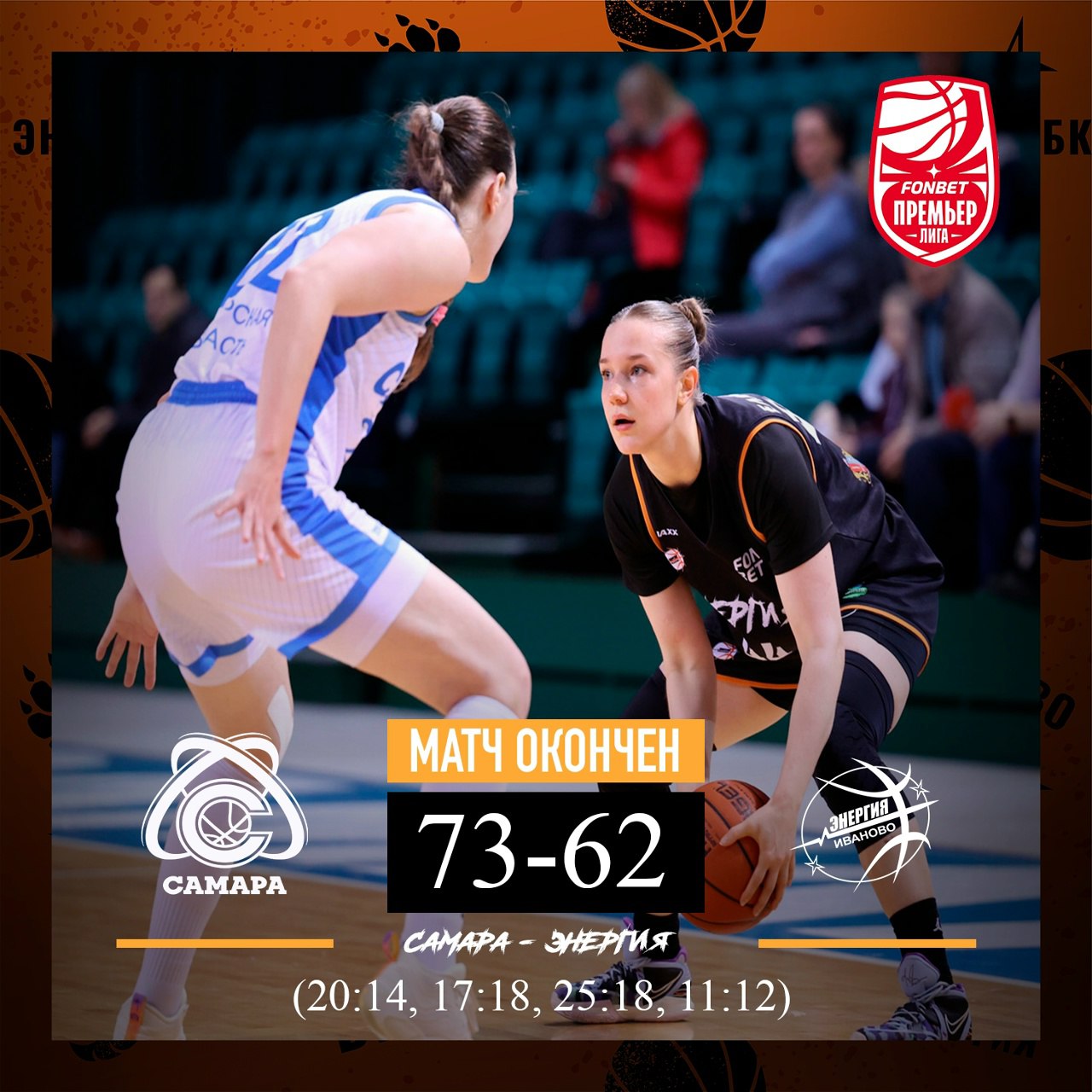 Баскетболистки ивановской «Энергии» уступили в заключительном матче регулярного чемпионата. В гостях оранжево-черные проиграли «Самаре» со счетом 62:73. Самыми результативными в составе команды стали Александра Елисеева, Екатерина Кузнецова и Екатерина Рябова. Коллектив Дмитрия Шумихина завершил выступления в регулярке Премьер-лиги на десятом месте. Впереди команду ждет финальный этап за 9-12 места. В начале апреля он ориентировочно должен пройти в Иванове.