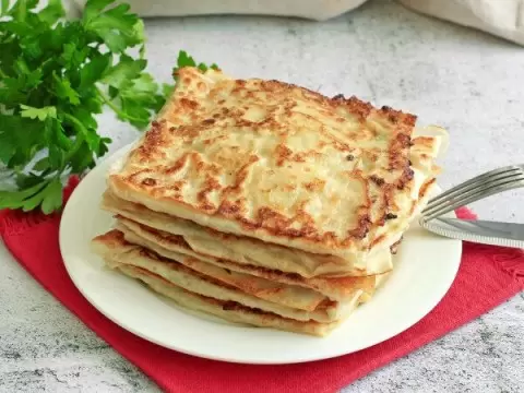 - Блины с зеленым луком и сыром: Сытное блюдо, которое можно подавать как на завтрак, так и на ужин. Блины, фаршированные зелёным луком и расплавленным сыром, — это всегда праздник на столе.